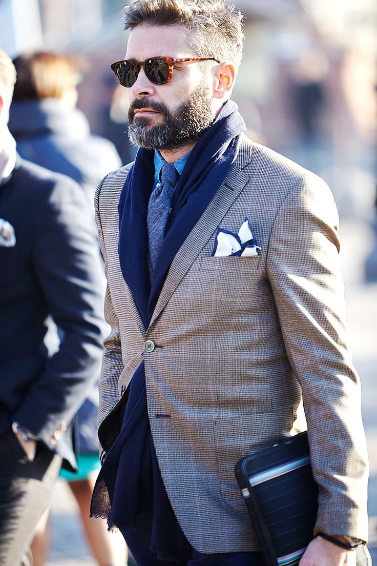 Màu xanh cũng tạo nên điểm nhấn thú vị khi hiện diện trên phụ kiện. Với không khí se lạnh ngày Tết, tôi nghĩ tới mũ beanie, khăn quàng, găng tay. Khi kết hợp với trang phục, phụ kiện tạo nên sự tương phản vô cùng tinh tế: một chiếc khăn màu xanh đậm đi cùng bộ suit màu than (charcoal) mang lại cảm hứng cổ điển hay chiếc mũ beanie xanh navy là “cầu nối” tuyệt vời cho áo da màu nâu.