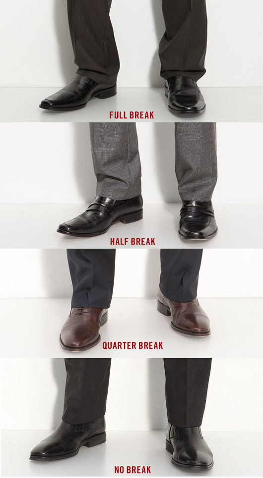 - Half break: Ống quần dài, gấu quần chùm mép giày.