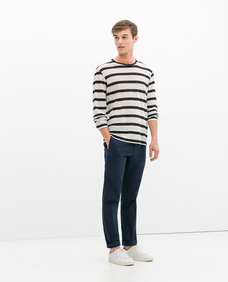 Chớ có đâm đầu vào skinny chinos bởi với chất liệu không co giãn như jeans, kiểu quần này thực sự là một thách thức lớn trong mùa nóng nực, ngột ngạt.