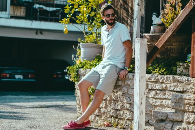 Thay thế bằng: Quần shorts chinos. Trong vài năm vừa qua, độ dài quần short ngày càng ngắn hơn. Độ dài tiêu chuẩn cho loại quần này phải là trên đầu gối. Bạn có thể thấy được sự tiện lợi của quần shorts chinos khi chúng dễ dàng ăn nhập với áo phông, áo sơ mi oxford ở trên, giày loafers, slip-on, espadrilles, v.v…