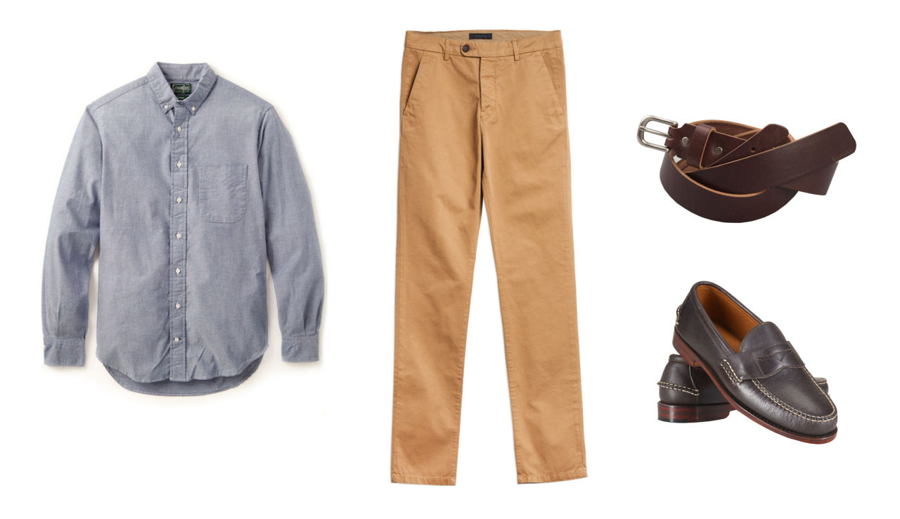Áo sơ mi vải chambray thực sự vô cùng “hay ho” bởi chất liệu thoáng mát và kết cấu sợi vải vô cùng đặc biệt. Phong cách công sở hiện đại sẽ đến từ những thứ hết sức đơn giản: áo sơ mi màu xám, quần khaki và một đôi giày loafer da được chăm chút kỹ lưỡng.