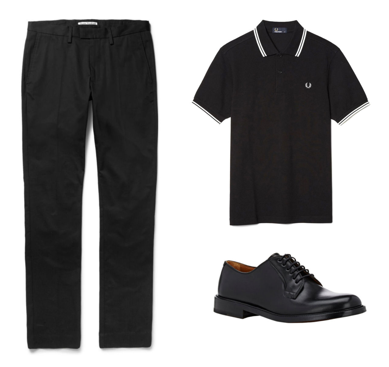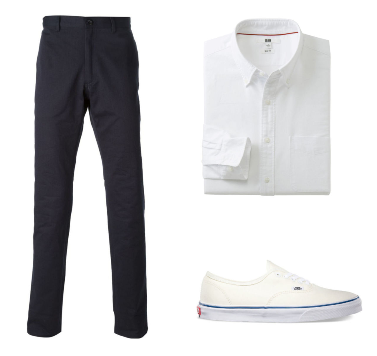 Trắng + Đen chưa bao giờ nhàm chán hay cũ kỹ. Bạn sẽ có ở đây một chiếc sơ mi oxford trắng ngà, quần chinos màu đen dáng slim-fit và một đôi giày Vans giúp bộ trang phục mềm mại hơn rất nhiều.