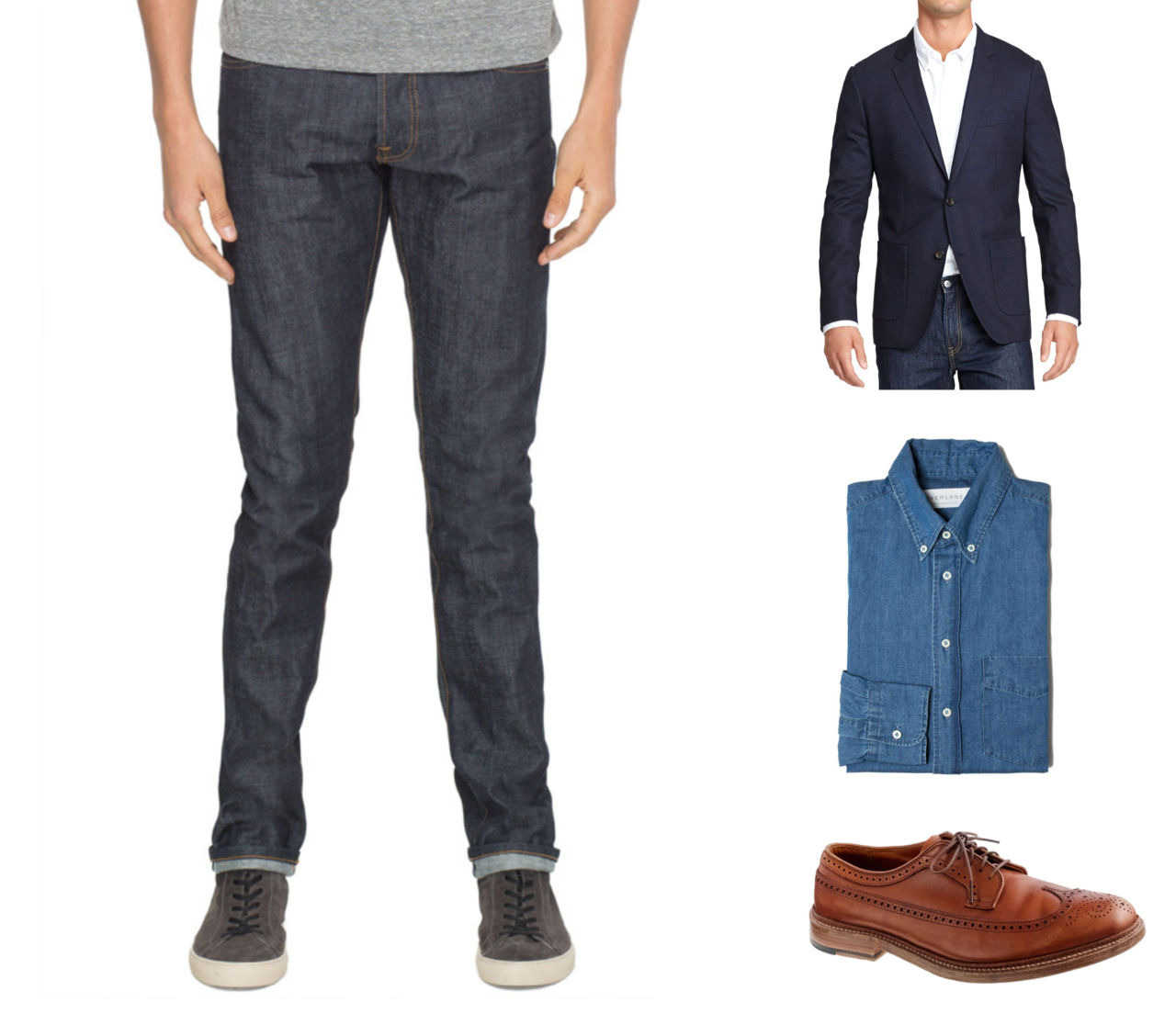 Kết hợp áo sơ mi denim với áo khoác blazer được dự đoán sẽ là hot trend của mùa Đông năm nay. Bạn có thể hoàn thiện phong cách này bằng một chiếc quần jeans khác tông màu với áo và một đôi brogues màu nâu đậm (giày màu nâu đậm rất hợp với tông màu xanh indigo của quần jeans).