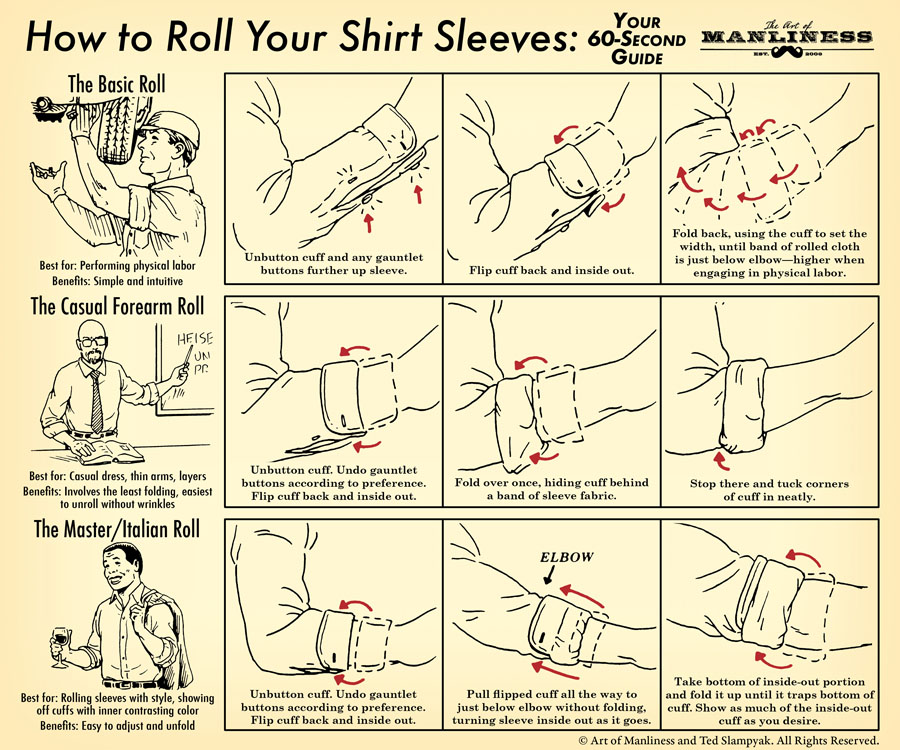 Nhiều người có thói quen mặc sơ mi dài tay theo đúng nghĩa nguyên bản, có lẽ vì họ muốn giữ vẻ ngoài chín chắn và đĩnh đạc. Cá nhân tôi khi đã nhìn ai đó quen mặc sơ mi “kín cổng cao tường” như vậy, mỗi khi họ xắn tay áo lên là đã có sự khác biệt vô cùng rõ rệt: trông họ như thoải mái, dễ gần hơn rất nhiều.
