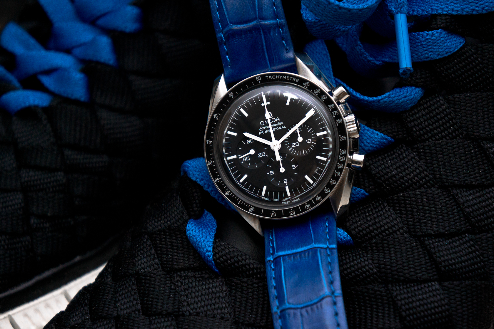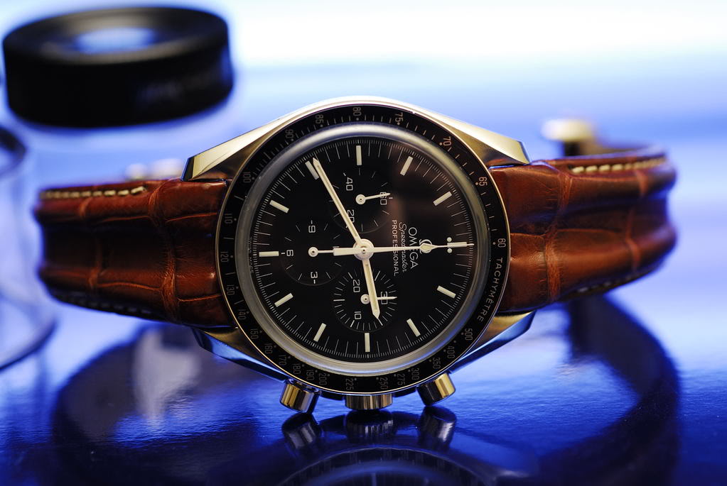 Tôi sẽ lấy vài hình con Omega Speedmaster với các loại dây khác nhau làm ví dụ: