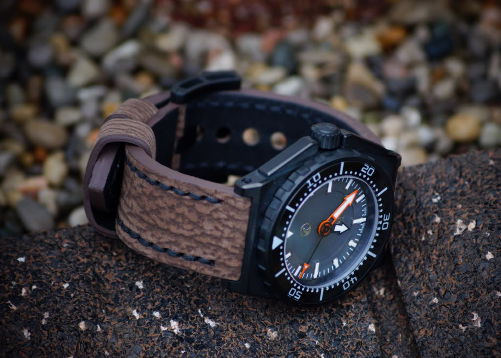 6. Da cá mập: một lựa chọn được ưa thích của những ai mê đồng hồ lặn. Da cá mập khi gặp nước bề mặt đang từ khá phẳng sẽ nổi lên những cục phồng gồ ghề hay những đường nhăn.