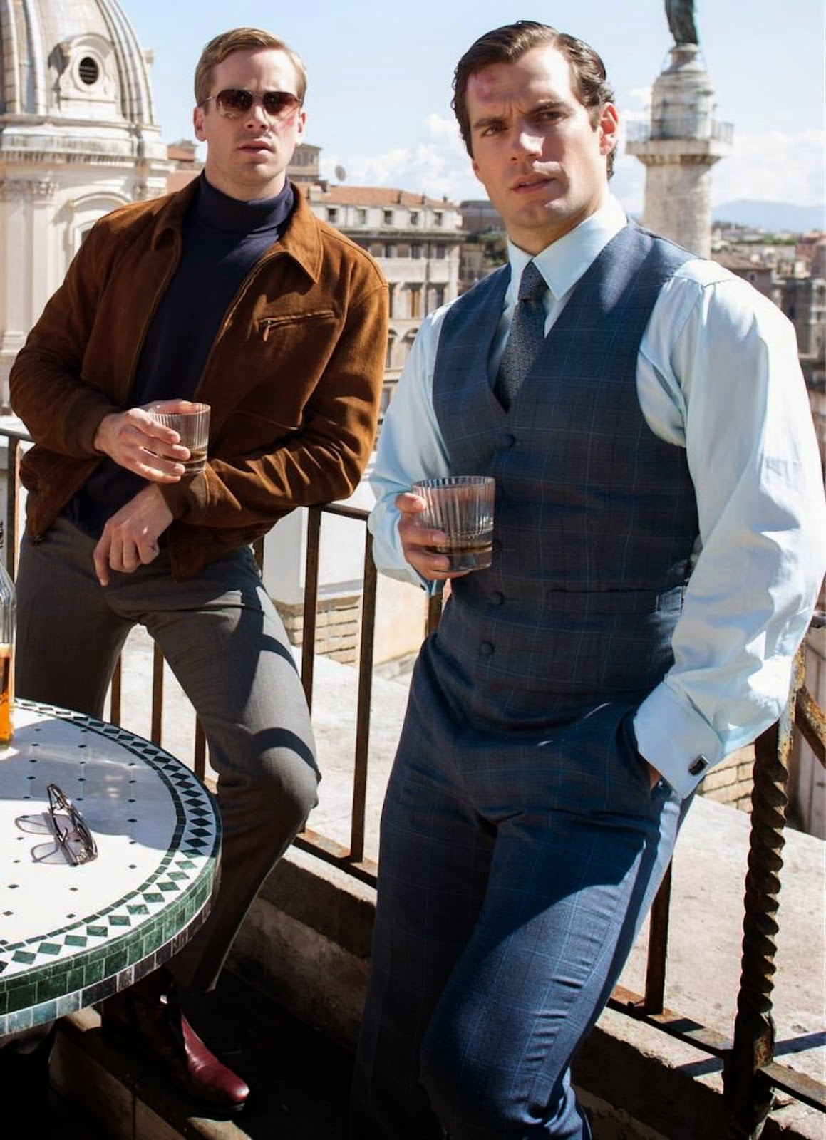 Phải rồi, thời trang những năm 60 của thế kỷ trước chưa bao giờ thời thượng đến vậy qua The man from U.N.C.L.E. Nhân vật của Henry Cavill, chàng điệp viên người Mỹ Napoleon Solo hào nhoáng trong những bộ bespoke suit trong khi điệp viên KGB Ilya Kuryakin (Armie Hammer) lại mang hình ảnh của một Steve McQueen đỉnh cao phong độ.