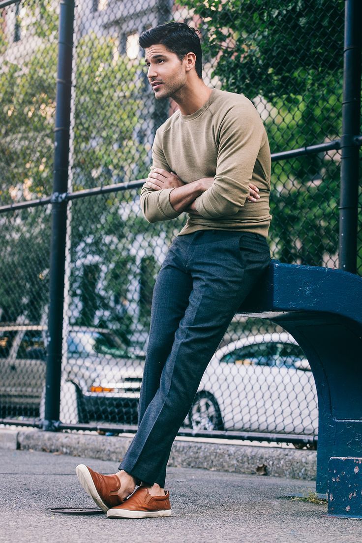 Bạn có thể bắt đầu bằng những áo len cổ tròn với kiểu dáng gọn nhẹ, hoặc một chiếc áo chui đầu chất liệu len cotton với tông xám, xanh navy hoặc beige. Nếu muốn có gì đó nhấn nhá trong trang phục, hãy tìm những chiếc áo len có thêm miếng đắp khác màu ở phần khủy tay (elbow patch).