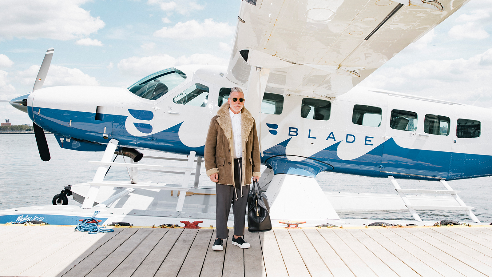 “Những ai sống ở New York đều rất bận rộn và luôn muốn thoát khỏi sự vội vã ở đây để thư giãn và nghỉ dưỡng. Bến thuỷ phi cơ này chỉ cách nhà tôi 10 phút ô tô và mất 20 phút để đi tới Fire Island, nơi tôi có thuê một căn nhà. Tôi cho rằng kính râm là thứ phụ kiện không thể thiếu mỗi khi ra ngoài. Tôi từng phẫu thuật mắt cách đây khoảng 13 năm và di chứng để lại là một đôi mắt nhạy cảm với ánh sáng. Tôi tin dùng kính của Garret Leight, Oliver Peoples, Moscot và Ray-Ban“.