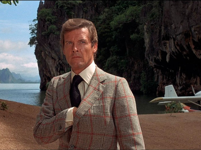 Một chiếc áo với hoạ tiết to bản vô cùng ấn tượng được khoác lên người Roger Moore. Hình ảnh của Bond bỗng trở nên thật mới mẻ mà vẫn đảm bảo phong thái mạnh mẽ, quyết đoán đặc trưng.