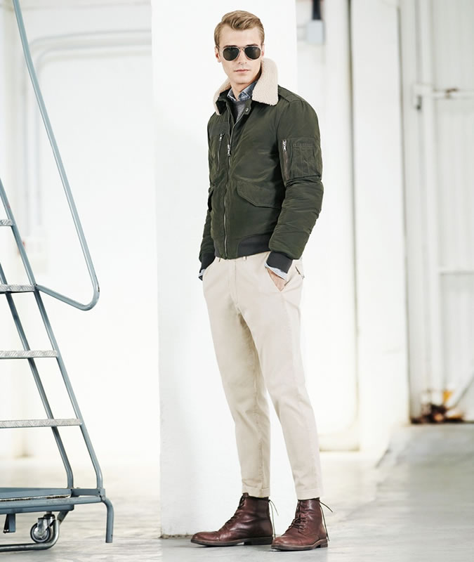 Tất nhiên tông màu này sẽ trở nên hoàn thiện nhất khi được áp dụng vào trang phục phong cách bụi bặm: boots da, quần chinos tối màu và áo sơ mi denim. Bên cạnh đó, bạn vẫn có được vẻ năng động, trẻ trung khi kết hợp bomber jacket xanh khaki với giày Vans hoặc Converse, áo sơ mi dáng dài và quần joggers.