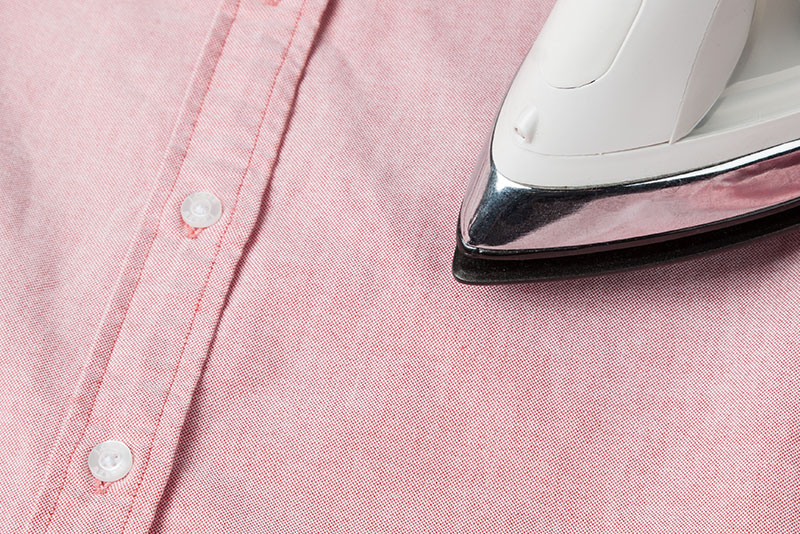 Đây sẽ là phần việc đòi hỏi sự khéo léo của bạn. Sử dụng phần mũi bàn là, di chuyển thật nhẹ nhàng xung quanh hàng khuy để là phẳng phần vải ở đây. Việc “đụng chạm” vào khuy rất dễ dẫn tới việc làm sút chỉ và sức nóng sẽ làm chảy khuy chất liệu nhựa.