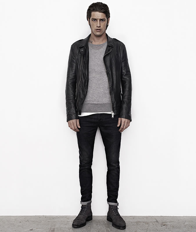 Bạn sẽ cần đến gì? Áo sơ mi tông màu đậm, quần jeans rách và một đôi boots thật bụi bặm, tất cả những món đồ này sẽ kết hợp vô cùng ăn khớp với áo khoác da biker.