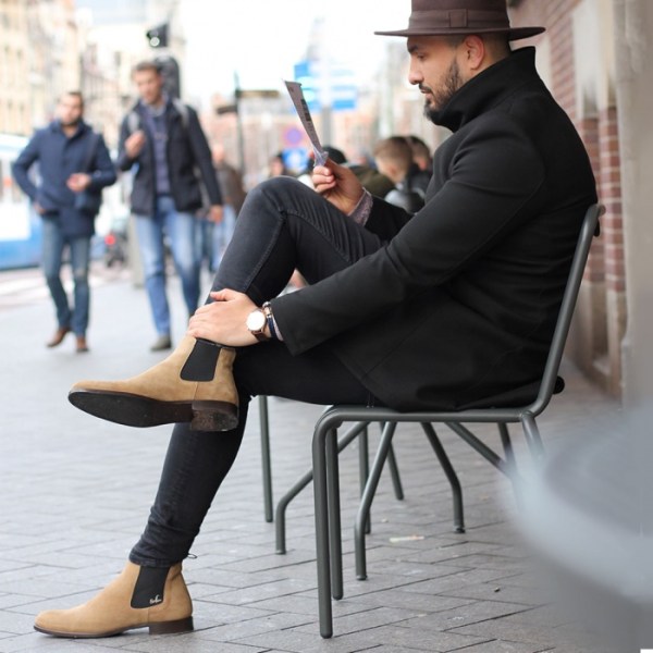 Giày màu nâu đậm chính là “bạn tốt” của jeans xanh đậm (indigo) và cũng hợp luôn với các kiểu quần mài. Tôi luôn chọn giày nâu đậm với hoạ tiết brogues hoặc Chelsea boots cho quần jeans. Màu nâu càng đậm càng dễ mặc với jeans, thậm chí có là jeans đen đi chăng nữa.