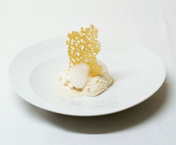 “Vì sao đồ ăn Ý lại hấp dẫn?” – Bottura hỏi tôi và tự trả lời. “Những hương vị này được cô đọng từ hàng thế kỷ qua”. Ông ta nhắc đi nhắc lại về phô mai lâu năm, thịt ướp muối, mỳ pasta, loại giấm lâu năm của Modena, nơi Bottura được sinh ra. Những gì ông làm là tái thiết kế lại công thức nấu ăn từ những người bà. Như món “Five Ages of Parmigiano Reggiano” (5 Giai Đoạn Của Parmigiano Reggiano), nguyên liệu chính của món này là vua của các loại phô mai: Parmigiano Reggiano hay còn gọi là Parmesan. Món ăn vốn rất truyền thống và đơn giản của Modena được chuẩn bị theo 5 cách khác nhau. Parmesan 24 tháng được nấu thành kem mousse, 30 tháng tạo thành bọt, 36 tháng thì làm sốt, 40 tháng chiên giòn và 50 tháng thì biến thành “khói”.