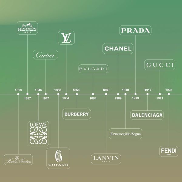 Thương hiệu thời trang lâu đời nhất, phải là Brooks Brothers, không thể lệch đi đâu được nữa. Cửa hàng đầu tiên của Brooks Brothers mở cửa đón khách từ tháng 4/1818 và khi Thế chiến thứ 1 kết thúc, thương hiệu này đã có bề dày lịch sử 100 năm. Theo sau đó là một loạt cái tên nổi đình nổi đám đến tận ngày nay: Hermès ra đời năm 1837, 10 năm sau, Loewe và Cartier thành lập tại Madrid và Paris.