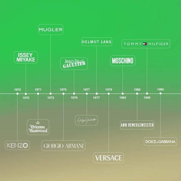 Năm 1975, Giorgio Armani mở xưởng sản xuất tại Milan, đặt nền móng cho một đế chế ăn vận lịch lãm, suit của Armani giống như “đồng phục” dành cho những con người xuất sắc ở phố Wall. Năm 1985 cũng đánh dấu ngày khai sinh của 2 cái tên với 2 phong cách trái ngược nhau: Tommy Hilfiger năng động, khoẻ khoắn, đậm chất preppy và Dolce & Gabbana sang chảnh, gắn liền với tông đen huyền bí.