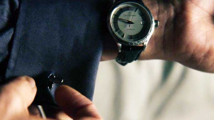 Nhắc đến phụ kiện thì không thể thiếu đồng hồ, Mosca chọn đồng hồ Carl F Butcherer, dòng Manero AutoDate trên tay John Wick, mẫu đồng hồ có thiết kế thanh lịch, “sạch sẽ”, chính xác là những gì trang phục của nhân vật đang hướng đến.