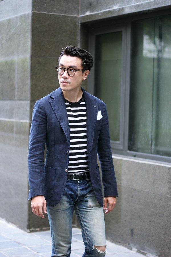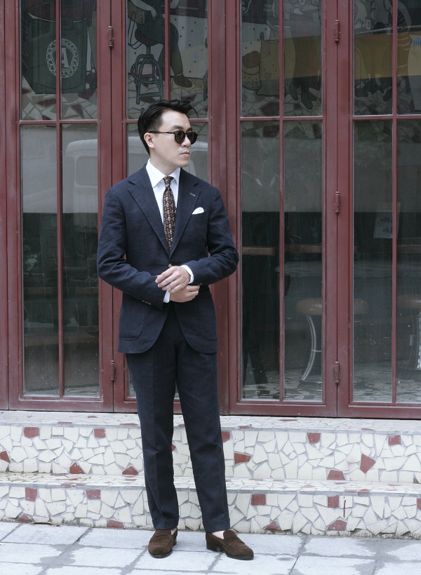 Muốn hướng tới vẻ ngoài lịch lãm thì khó mà thoát khỏi đồ may đo. Vậy giải pháp là gì khi bạn muốn diện suit vào mùa Hè mà không phải hy sinh đi sự thoải mái? Câu trả lời của tôi là một bộ suit màu xanh navy, chất liệu linen. Màu xanh navy thuộc tông màu trung tính, dễ mặc, dễ phối đồ, còn vải linen thì quá hợp lý cho mùa Hè. Hai yếu tố này kết hợp với nhau sẽ cho ra đời một bộ đồ… “chống nắng” hạng sang 😂.