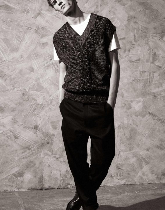 Áo gile len cổ chữ V khoét sâu dáng thụng đang quay trở lại, từ những thương hiệu hạng sang như Prada hay bình dân như COS đều có các phiên bản của riêng mình.