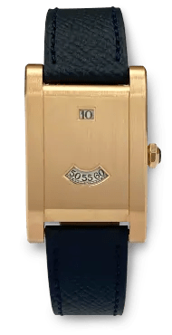 Mẫu Tank này có vỏ vàng 33,7 mm và khả năng chống nước lên đến 100 feet. Đồng hồ được hoàn thiện với mặt số màu bạc dạng hạt và dây đeo da cá sấu màu nâu.