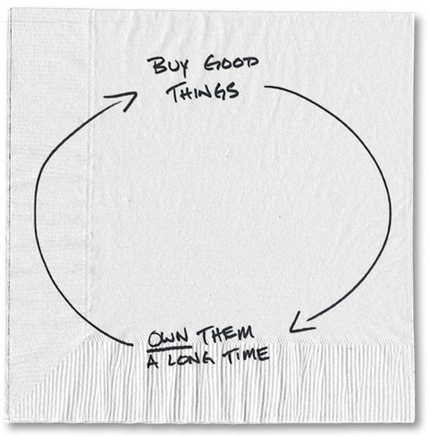 Thật dễ để tự thuyết phục bản thân rằng mình đang tiết kiệm khi mua những món đồ rẻ tiền, đại hạ giá từ siêu thị thay vì những món chất lượng mà chúng ta thực sự muốn. Những món đồ bền bỉ, những món đồ mà chúng ta có thể sử dụng lâu dài.