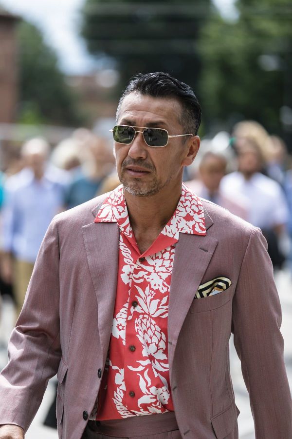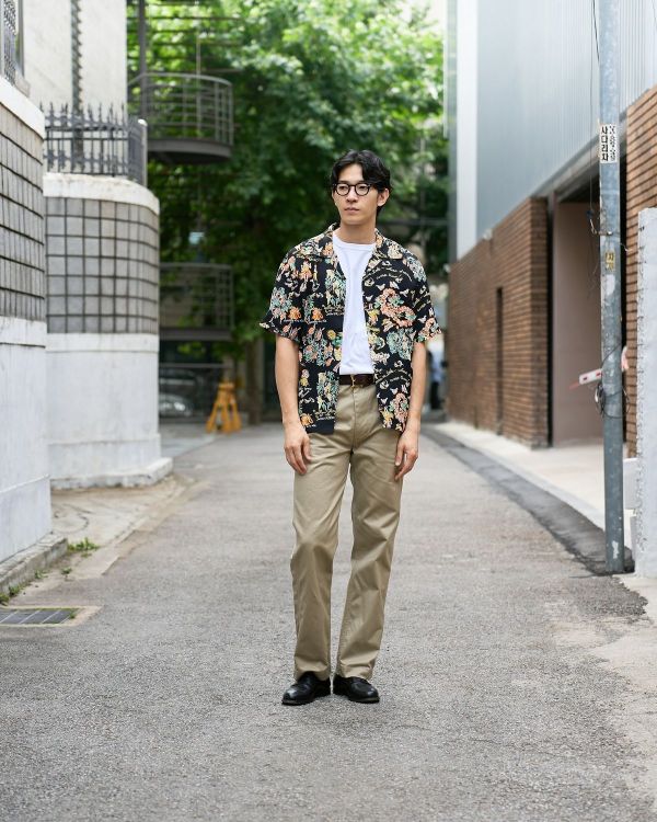 Câu hỏi đặt ra là: làm thế nào để mặc Aloha shirt mà không biến thành “ông chú resort?” Câu trả lời nằm ở sự chọn lọc. Những họa tiết tinh tế, gam màu trầm hoặc kiểu “reverse print” (in chìm) mang lại cảm giác sang hơn hẳn. Phom dáng boxy vừa vặn, đủ thoải mái nhưng không quá thùng thình, giúp giữ cân bằng. Khi phối, hãy thử với quần chinos sáng màu, quần shorts, hoặc layering cùng denim jacket, thậm chí blazer nhẹ kiểu resort, tất cả đều biến chiếc áo hoa trở nên hiện đại, thể hiện đúng tinh thần casual mà không hề lố.
