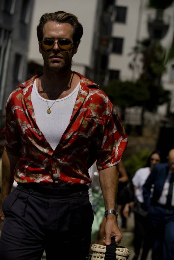 Nhưng thời trang có quy luật xoay vòng của nó. Khi sơ mi cổ camp và dáng boxy trở lại từ giữa những năm 2010, Aloha shirt bất ngờ được hồi sinh. Gucci, Prada, Celine, Casablanca và rất nhiều brand sau đó đều tung ra những bộ sưu tập riêng. Một món đồ từng bị coi là sến súa bỗng nhiên được hồi sinh mạnh mẽ, trở thành tuyên ngôn mùa hè trên sàn diễn lẫn đường phố.