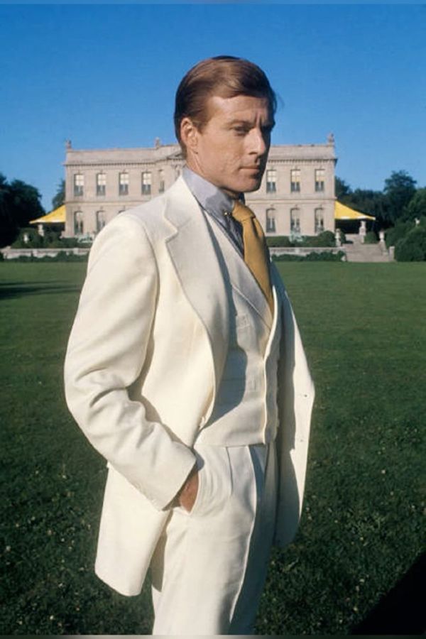 Không phải bản DiCaprio mà bạn đang nảy số ngay trong đầu đâu, mà là tạo hình của Robert Redford. Robert Redford đã khoác lên Gatsby những bộ đồ sang trọng bậc nhất: suit trắng ba mảnh với waistcoat double-breasted, suit hồng pastel cùng mũ baker boy, hay tuxedo trắng lịch lãm. Đặc biệt, chiếc áo len cricket vặn thừng trở thành món đồ bất tử, được coi như “kinh thánh” may đo của thập niên 70.