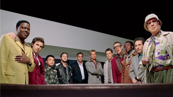 Bộ ba phim đầu thập niên 2000 không chỉ quy tụ Clooney, Pitt, Damon mà còn mang theo tinh thần xa hoa, ngông nghênh của những gà đàn ông alpha. Steven Soderbergh khoác cho băng nhóm lừa đảo những bộ suit bóng bẩy, ve áo rộng thênh thang, kính khổng lồ, khăn lụa rực rỡ. Brad Pitt chắc chắn là tâm điểm của cả toán cướp, anh gần như biến mọi khung hình thành sàn diễn với tủ đồ “khủng”. Đây là sự phô trương thời trang đúng nghĩa: lộng lẫy, vượt chuẩn mực, và đầy khí chất của thế giới ngầm.