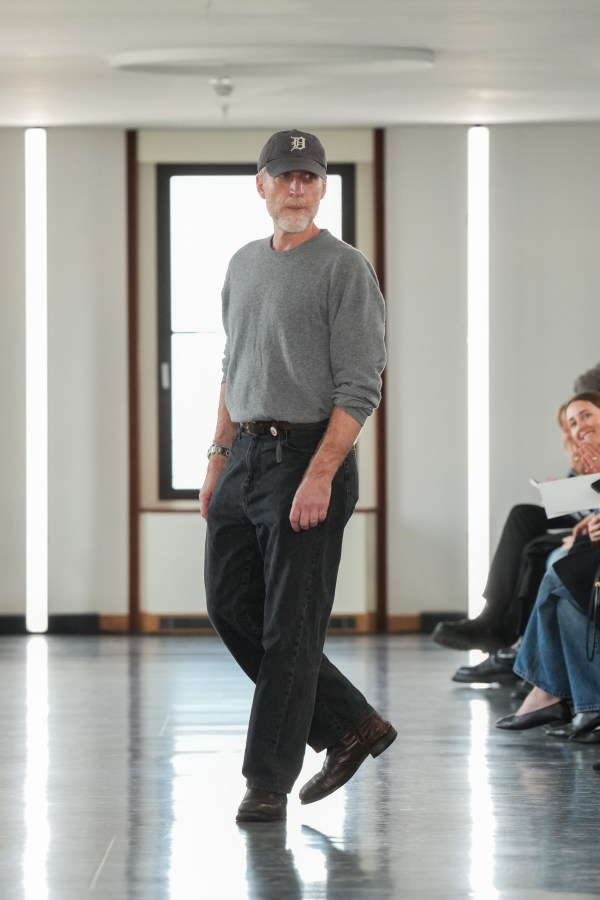 Simone Bellotti – giám đốc sáng tạo của Jil Sander, luôn đội chiếc mũ bóng chày xám bạc, t-shirt dài tay sơ vin, quần jeans ống suông màu đen và đôi giày loafers cũ kỹ, trông vừa gọn gàng vừa sắc nét.