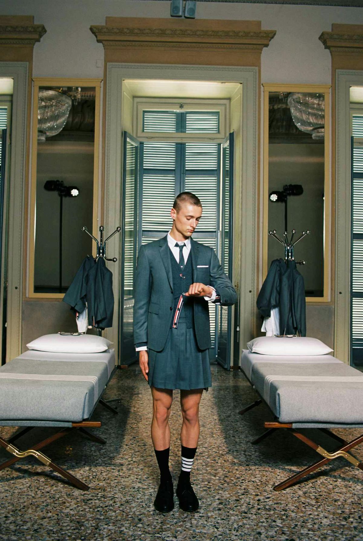 Tôi nghĩ về Thom Browne rất nhiều. Hiếm có brand nào giữ được phong độ huy hoàng như vậy, và cũng không có nhà thiết kế nào kiên định đến thế. Rõ ràng là cả hai điều đó đều mang lại trái ngọt. Điều tôi không hiểu là: tại sao thứ tạo nên thành công của Thom Browne lại chẳng thể lặp lại ở ai khác.