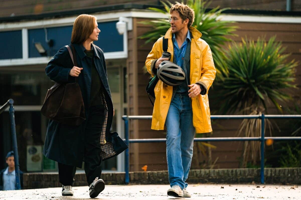 Kết quả là Ryland Grace mặc áo cardigan chunky knit in hình cáo, áo khoác mưa vàng như gấu Paddington, áo thun in mấy câu joke khoa học mà Gosling tự đề xuất thêm vào cho nhân vật của mình. Nỗ lực đó đáng được ghi nhận. Về mặt kỹ thuật, trang phục đã đúng hướng. Tweed jacket họa tiết herringbone xám, sơ mi kẻ, quần jeans mài cho cảnh giảng dạy, đúng hình ảnh của một ông thầy dạy khoa học nhàm chán. Nhưng vấn đề là Ryan Gosling mặc chúng. Tôi không nói điều này để khen. Đây giống như một “giới hạn vật lý” của điện ảnh: có những người mà dù bạn ném cho họ… quần áo rách thì hình thể và phong thái của họ vẫn tự làm mọi thứ trông ổn. Gosling là một trong số đó. Tất cả những trang phục kia mặc dù đã được tính toán kỹ lưỡng nhưng từ Gosling vẫn toát ra chất chơi mới đau. Mà cũng chẳng biết được, có khi quá khứ của Grace cũng “thú vị” lắm. “It’s been a long time since I’ve taken a pill from a stranger without knowing what it was.” – Đây là lần đầu tiên trong một thời gian dài tôi uống thuốc từ người lạ mà không biết đó là thuốc gì.